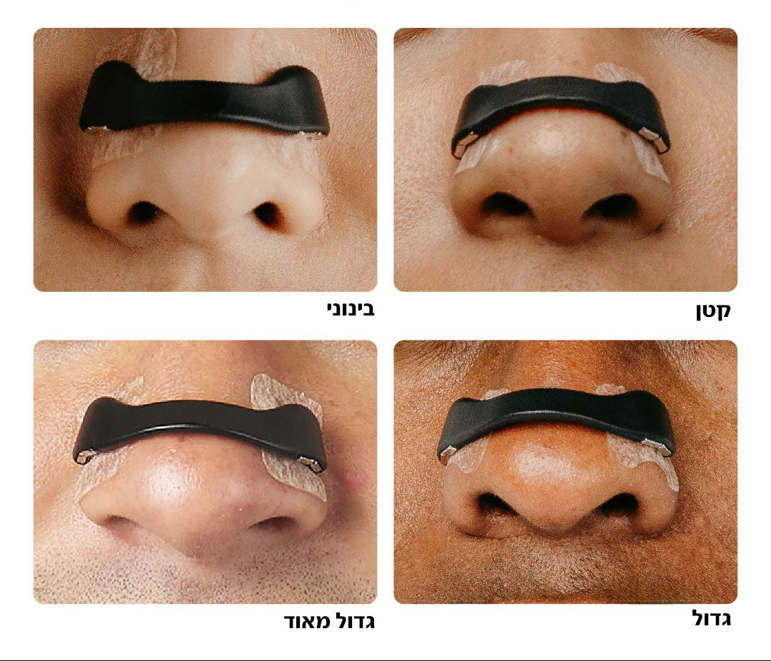 מגיע ב-4 גדלים שונים. הוא פשוט נוגע בדפנות של הנחיריים ופותח אותם בצורה שמאפשרת ליותר אוויר להיכנס. אפשר לשנות לכל אחד מהגדלים לפי הנוחות וההרחבה שאתה רוצה.
